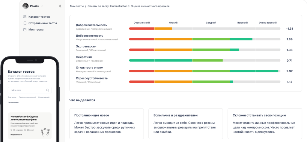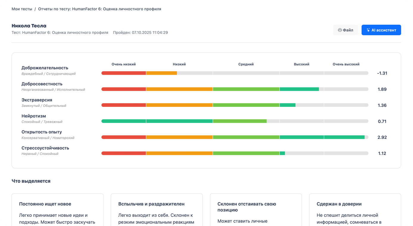 Быстрая диагностика когнитивных способностей кандидата: логического, числового, вербального и других типов мышления.
